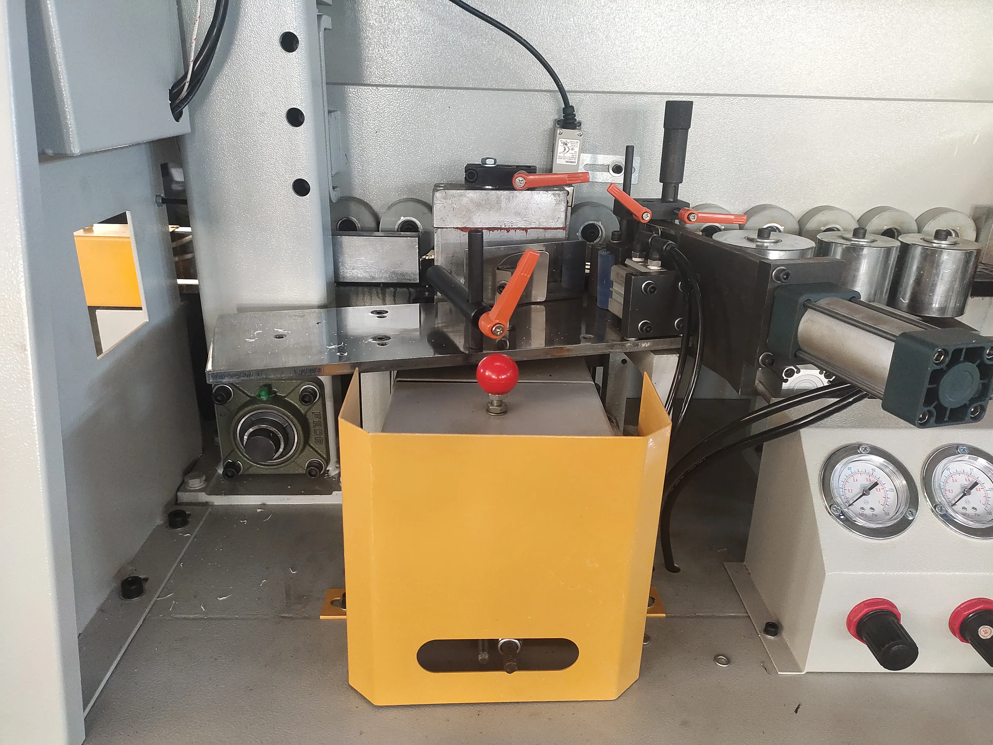 The preheating and gluing device of the electrical system makes the gluing of the edge plate and the edge material uniform through