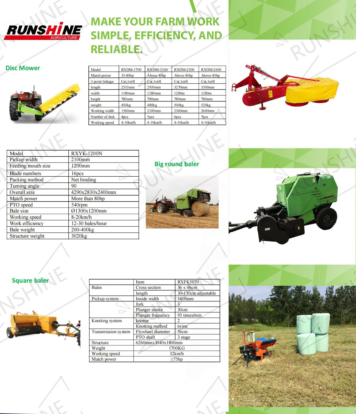 2014, we started producing big round baler, side driven square baler and middle driven square baler, these big machines sell good