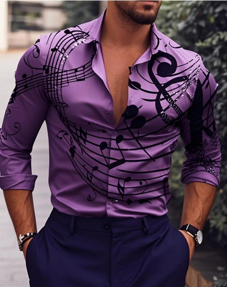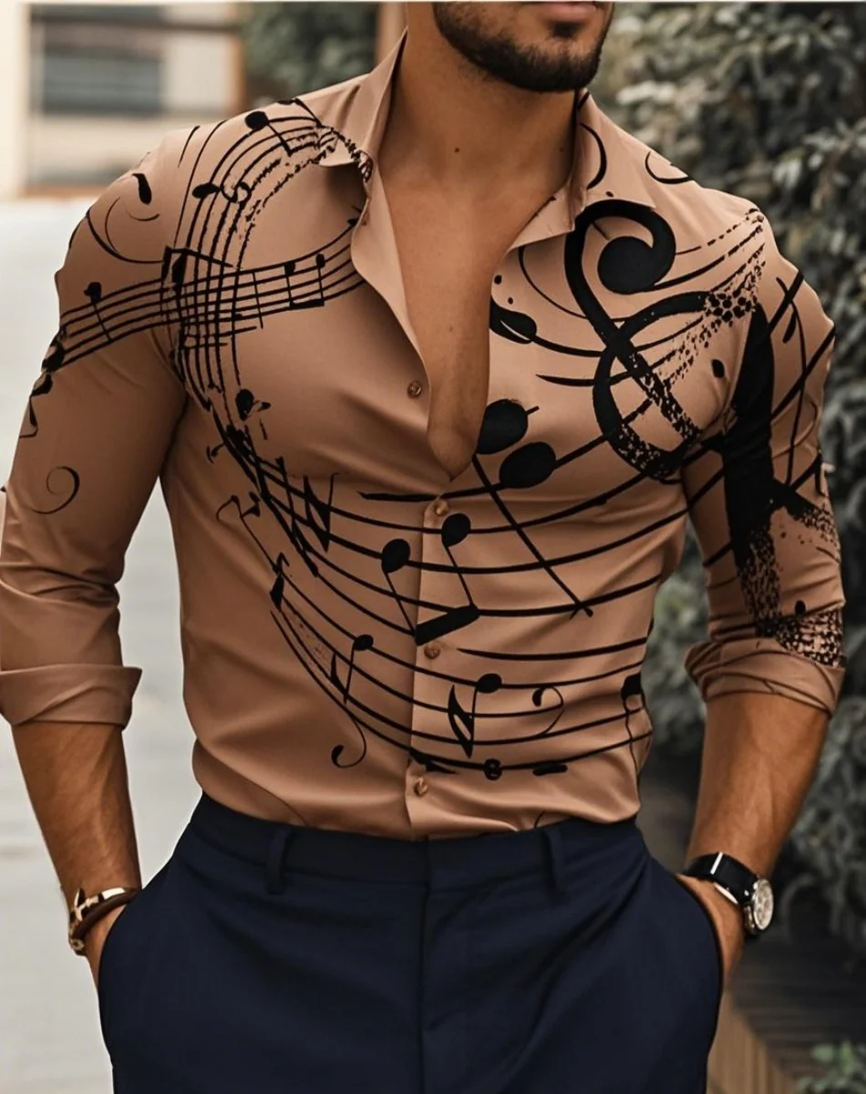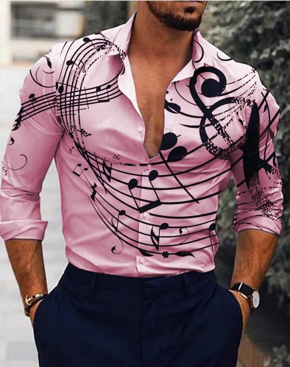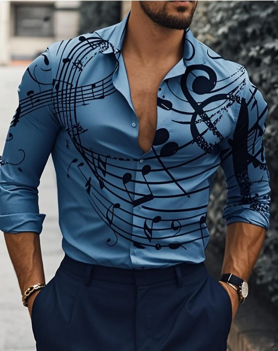 Мужские рубашки, розничная цена от $120.00, отзывы и фото о Новая мужская рубашка с длинным рукавом принтом музыкальной ноты повседневная универсальная модная уличная лацканами однобортная длинная, артикул на сайте продавца: 1005009063093283