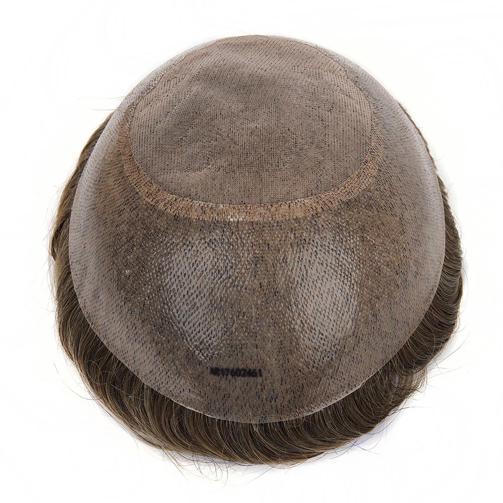 TOPUNIQUE TUL07 натуральные индийские кружева парик дышащая искусственная система замены волос естественный вид Гибридный Базовый стиль Мужская оптовая продажа